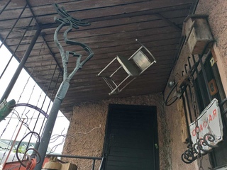 Двор с необычными скульптурамиНеобычный дворик на Петроградке размещен рядом с мастерской известного академика и художника – Владимира Ветрогонского. Кого тут только не увидишь: подвешенный стул, выкованного оленя, собаку в виде куска камня на цепи, пингвина из деревяшек, цветок на арматуре и много других непонятных скульптур. И хоть тут нет музейного лоска, смотрится все это необычно и креативно.Двор расположен на улице Литераторов, 15.